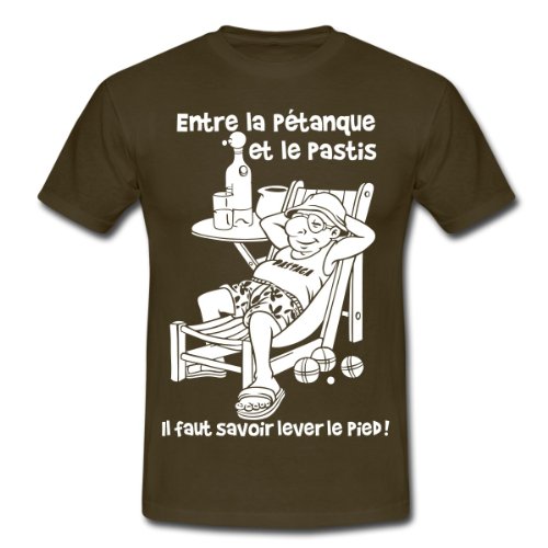 Spreadshirt, Entre la pétanque et le pastis flex, Tee shirt classique Homme, marron bistre, L