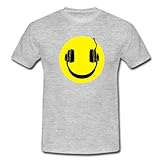 Spreadshirt, music lover smiley, Tee shirt classique Homme, gris chiné, M